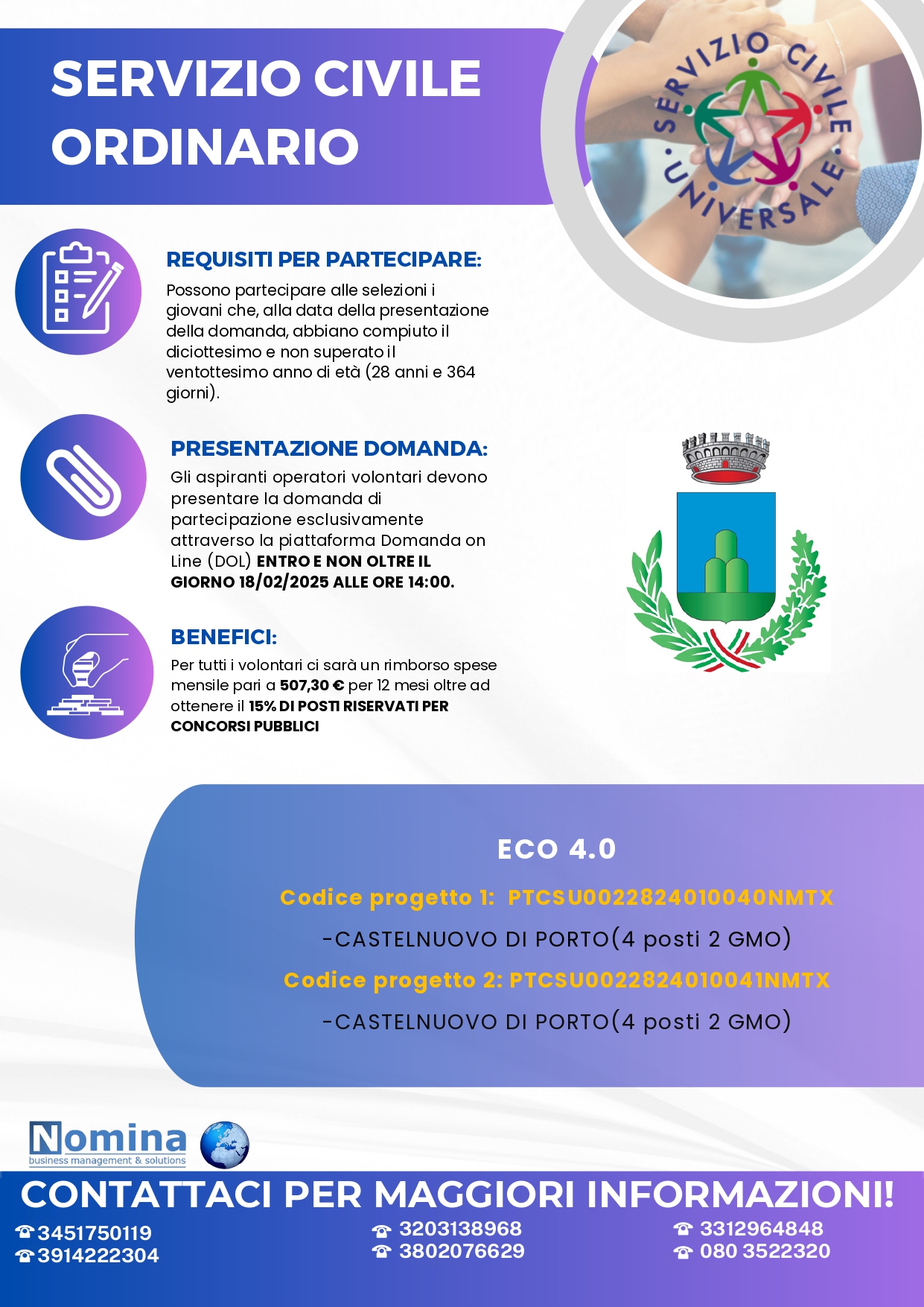 E’ online il Bando per la selezione di operatori volontari per il Servizio Civile Universale